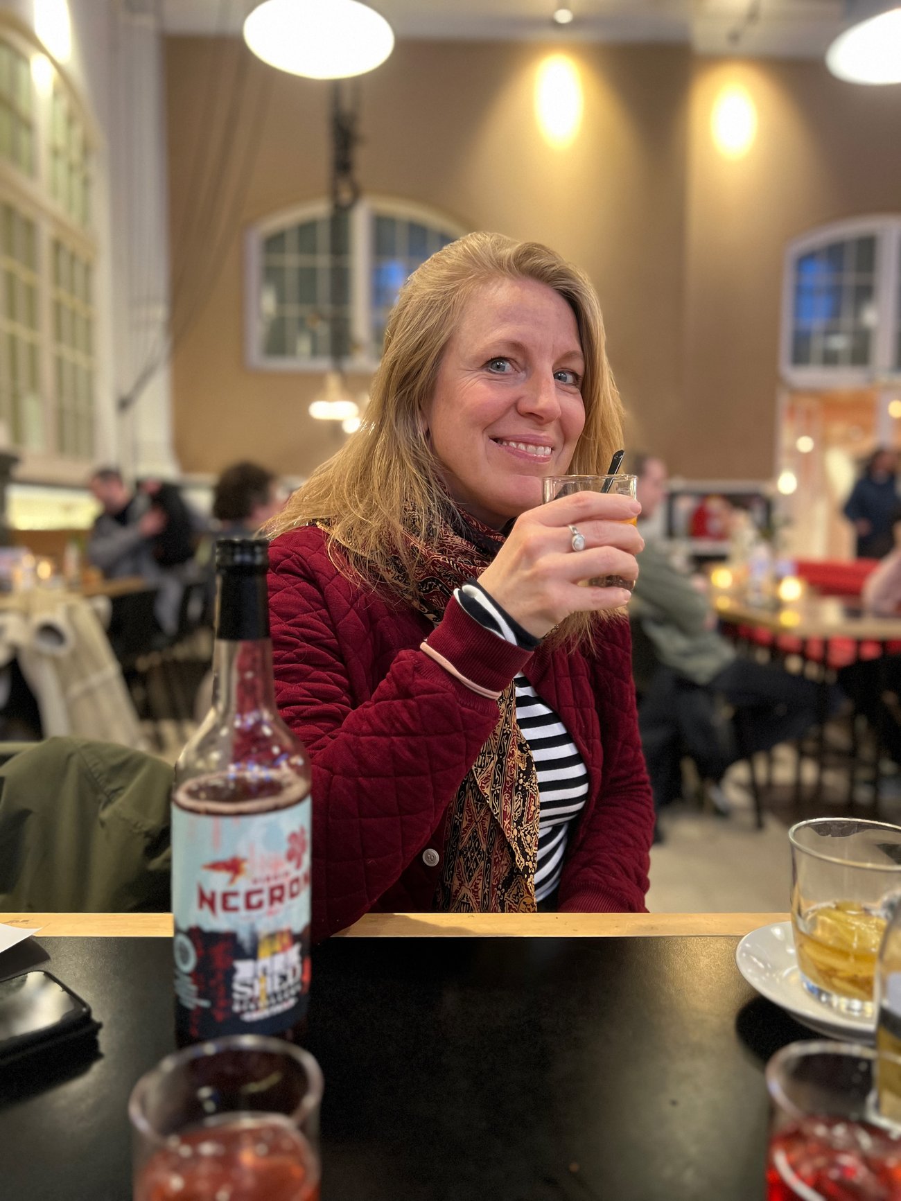 Eerst kwam ik chocolatier/ijsmaker Kees Raat tegen die nu een nieuwe obsessie heeft: alles voor de perfecte negroni. Hij ging zelfs zo ver dat ie een stokerij is begonnen om z’n eigen gins te maken, 'Dark Shed'.